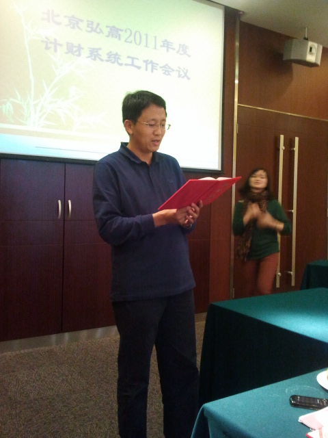 2011年11月17日上午,弘高公司計财中(zhōng)心及遼甯、山東、長春、三亞、西安、四川、江蘇、呼倫貝爾、青島等各分(fēn)公司财務及統計人員(yuán)在北(běi)京市五環大(dà)酒店(diàn)召開(kāi)了爲期兩天的“計财中(zhōng)心年度工(gōng)作會議”。在此次工(gōng)作會議上,公司總經理張旭東、公司副總經理孫志(zhì)新、财務總監王慧龍等領導分(fēn)别發表了講話(huà)。
